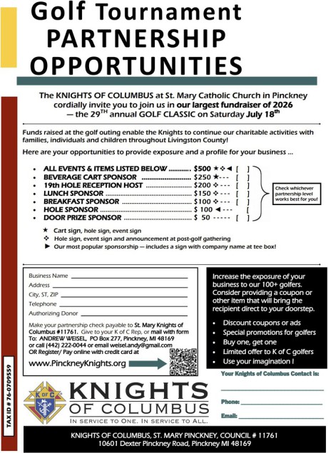 Register you and your foursome or Partner with us and become a SPONSOR!